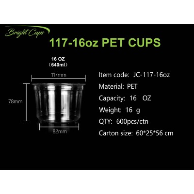 16oz (98mm 520ml) FLAT STYLE PET CUPS