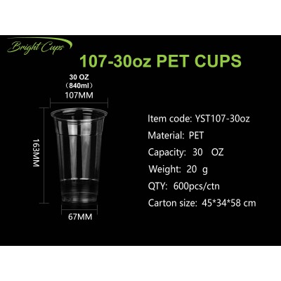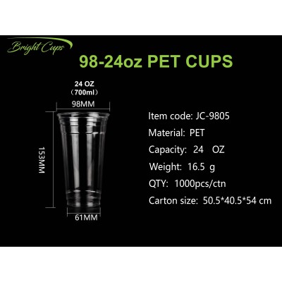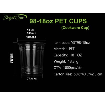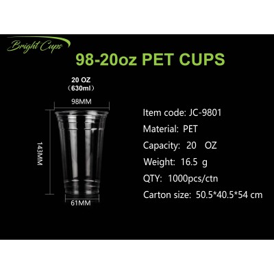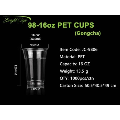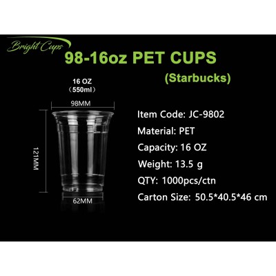 16oz (98mm 530ml) FLAT STYLE PET CUPS