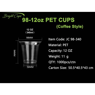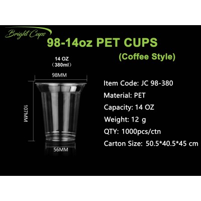 14oz (98mm) Coffee Style - FLAT STYLE PET CUPS