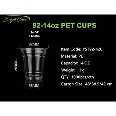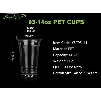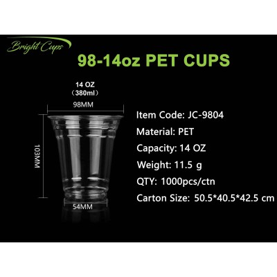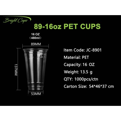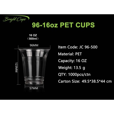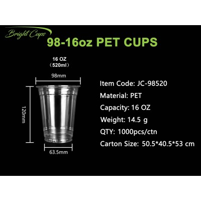 16oz (98mm 520ml) FLAT STYLE PET CUPS