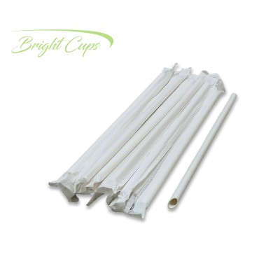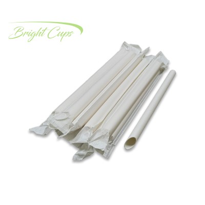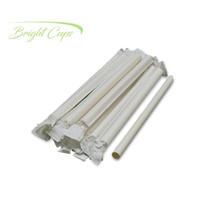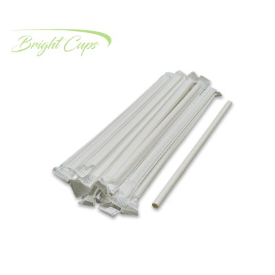 7.75"x12mm Flat Individual White Paper Straw