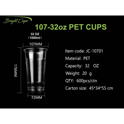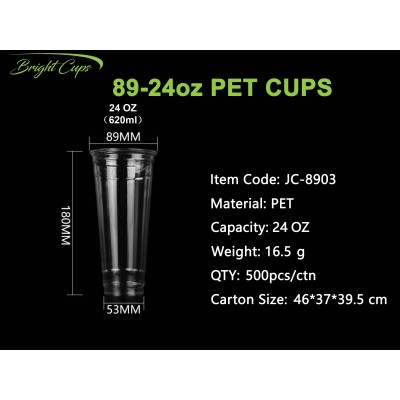 16oz (98mm 530ml) FLAT STYLE PET CUPS